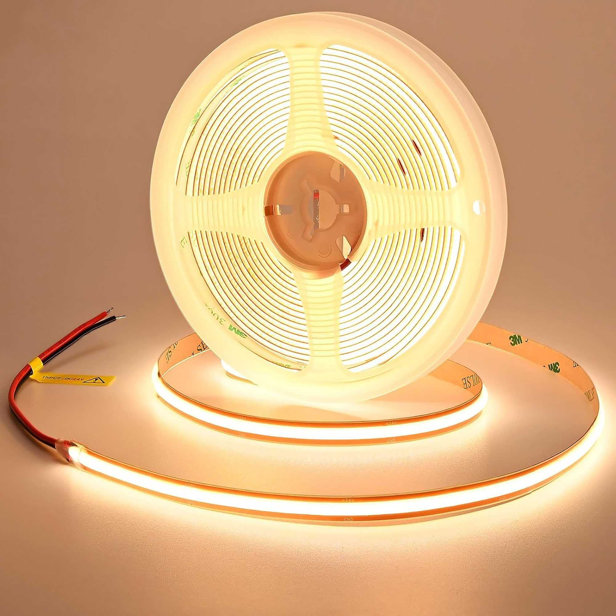 24V COB LED Strip Light Warm White 3000K – 5m, 14W/m, Self-Adhesive, IP20 Indoor Lighting