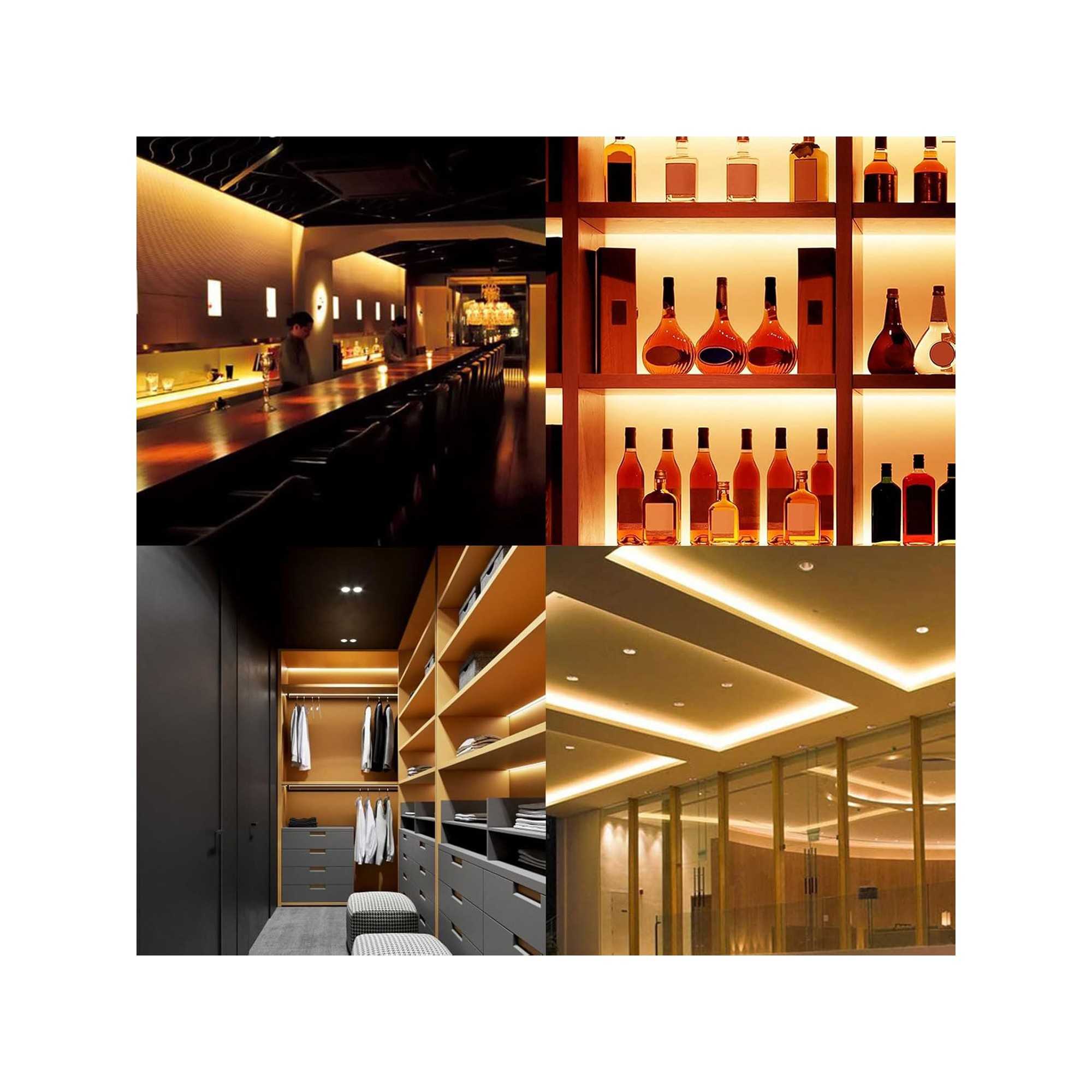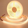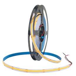 High-quality 24V COB LED strip with high LED density for uniform, dot-free lighting. Warm white 3000 K, cuttable every 45 mm, self-adhesive, and ideal for decorative indoor lighting.