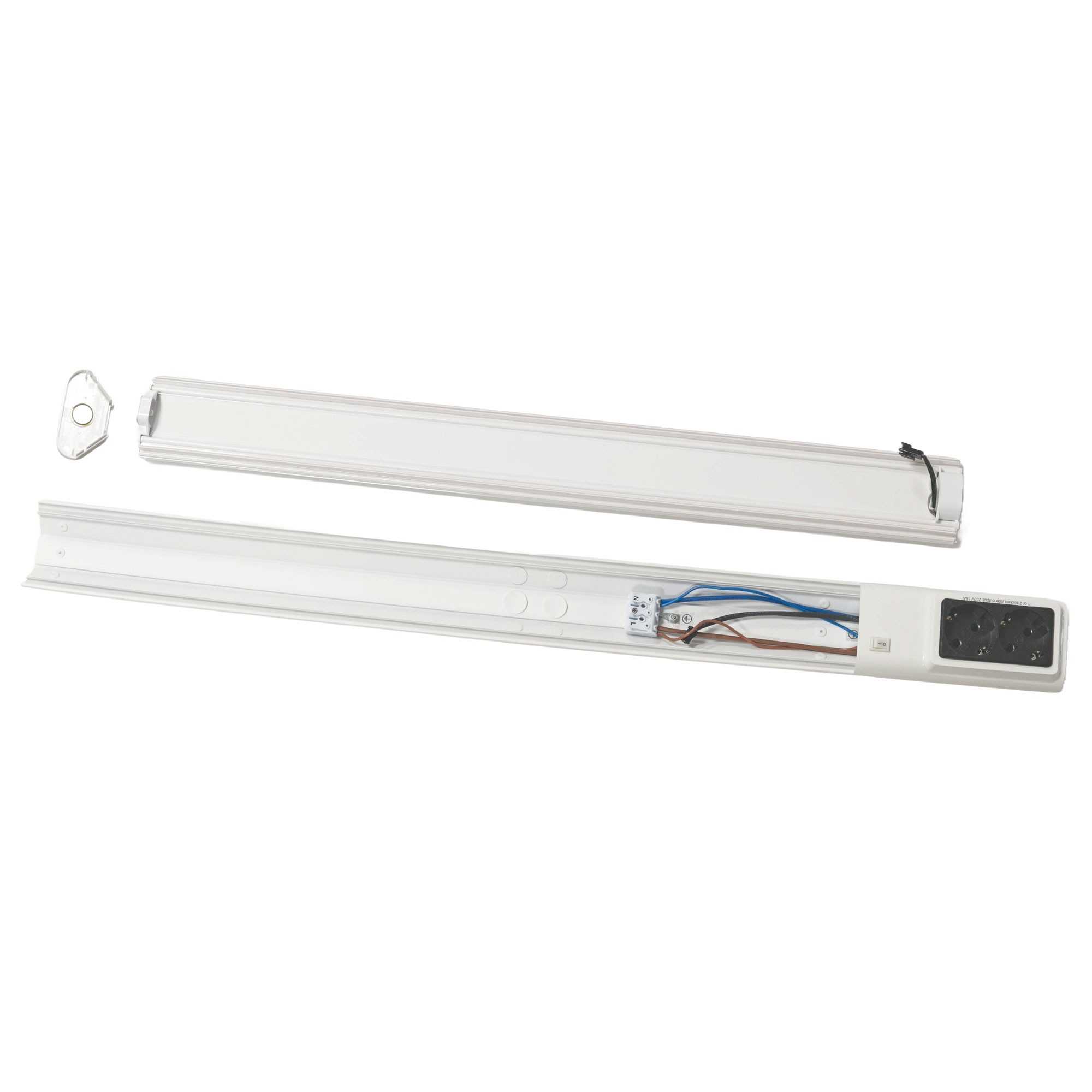 The 80cm LED under-cabinet light offers 12W power, 1500 lumen and three selectable colour temperatures (3000K, 4000K, 5700K). Ideal for the kitchen, it impresses with its slim design, simple installation, integrated switch and two additional sockets. Flicker-free operation for pleasant light.