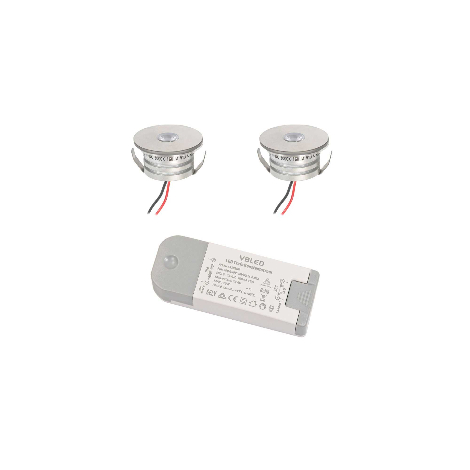 Set of 2 3W LED aluminum mini recessed spotlights "Luxonix" warm white with LED power supply unit