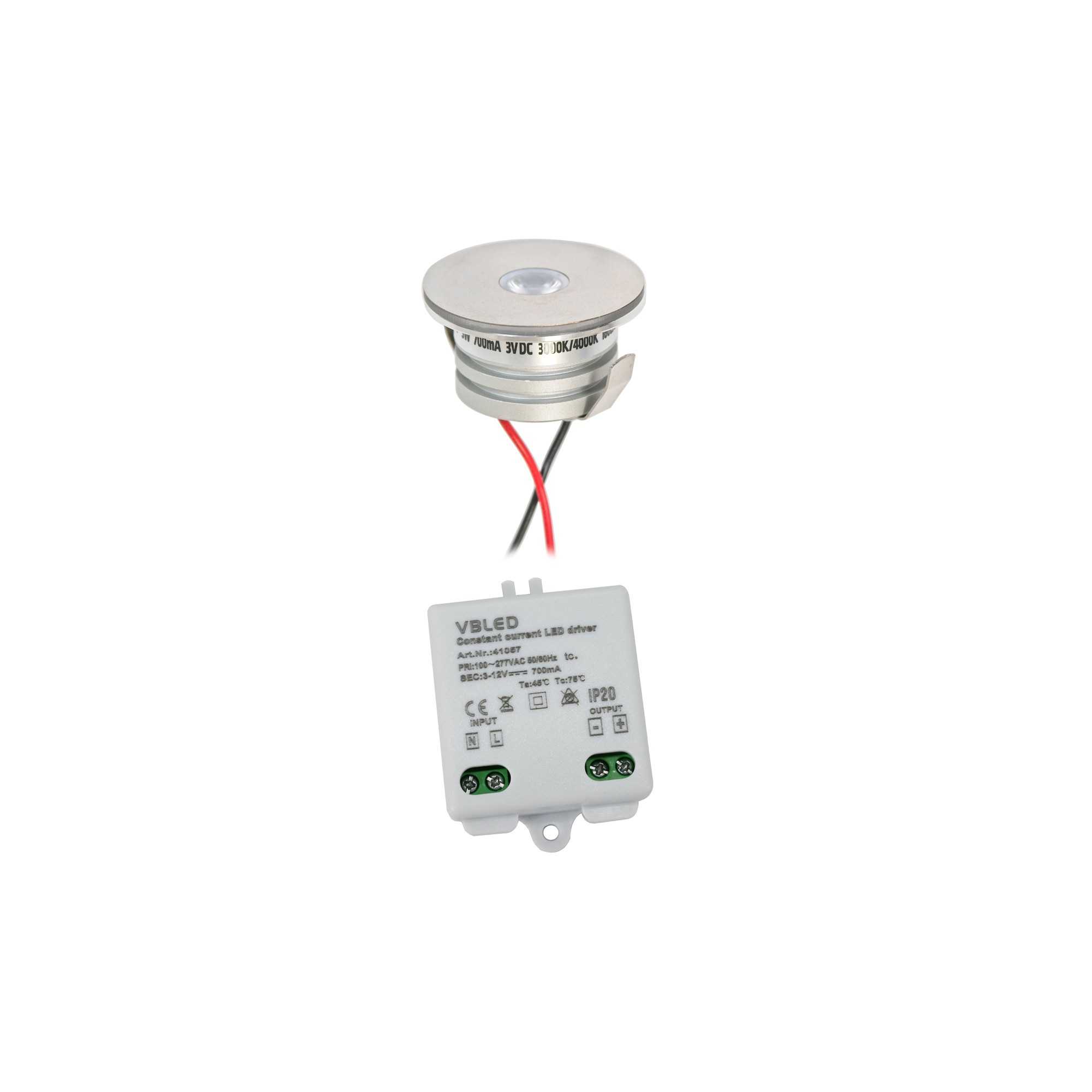 Lote de 1 mini foco empotrable de aluminio LED de 3W "Luxonix" blanco cálido con fuente de alimentación