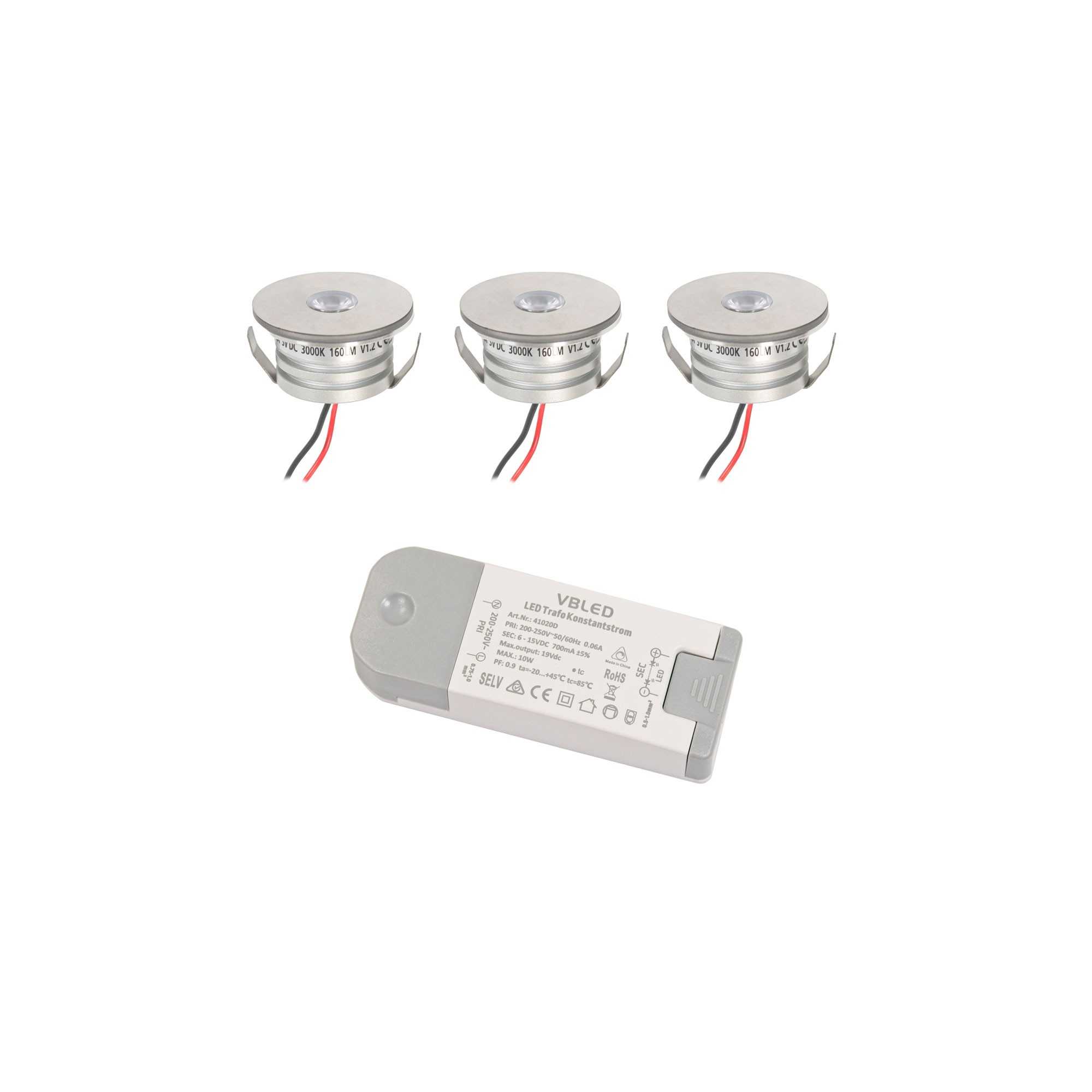 Set di mini faretti da incasso in alluminio a LED da 3W "Luxonix" bianco caldo con alimentatore dimmerabile